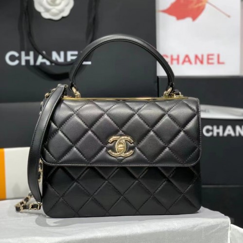 샤넬 트렌디 CC 탑 핸들 스몰 플랩백 블랙 금장 A92236