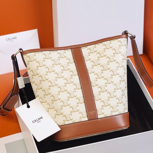 셀린느 트리오페 스몰 캔버스 카프스킨 버킷백 탄 191442CAS04LU