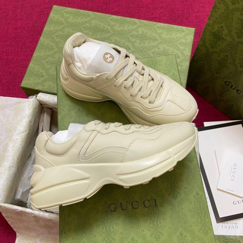 구찌 롸이톤 레더 스니커 디스트레스드 아이보리 550046-A9L00-9522