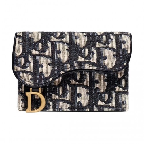 디올 오블리크 새들 플랫 카드 홀더 블루 S5610CTZQ M928