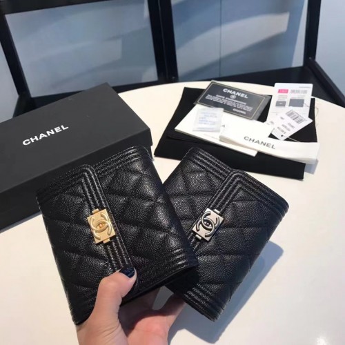 샤넬 보이 그레인드 카프스킨 플랩 반지갑 블랙 빈티지은장 금장 A80734 > 샤넬
