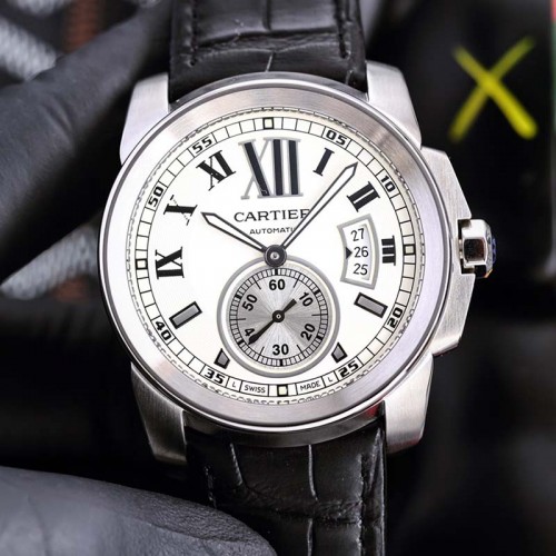 까르띠에 칼리브 가죽밴드 남성 42mm 오토시계 3칼라 W7100037