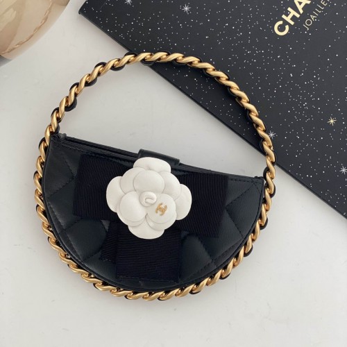 샤넬 23K 리본 까멜리아 체인 파우치 블랙 AP3584