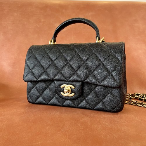 샤넬 핸들 장식의 미니 플랩백 그레인드 카프스킨 & 골드 메탈 블랙 AS2431-B05607-9430