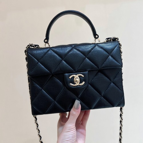 샤넬 24P CC로고 탑핸들 턴락 플랩백 블랙 AS4711