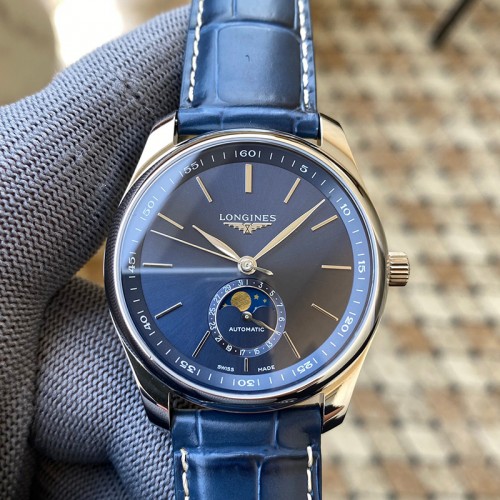 론진 마스터콜렉션 문페이즈 블루 가죽 40mm 시계 L2.909.4.92.0