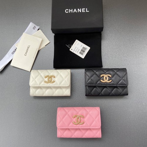 샤넬 클래식 CC 로고 캐비어 똑딱이 카드지갑 3칼라 AP3187