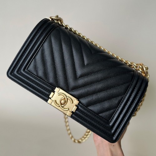 샤넬 보이백 미디움 쉐브론 캐비어 블랙 골드 A67086 (6칼라)