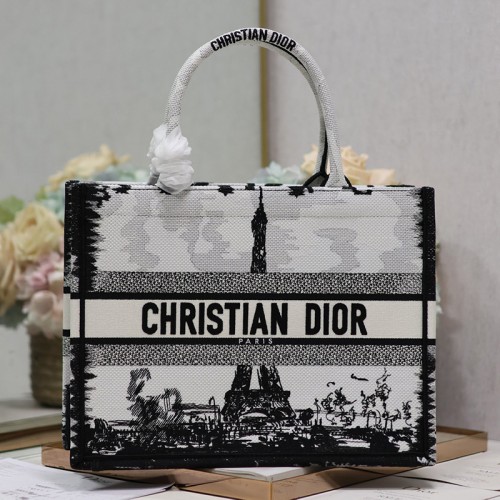 디올 북 토트 백 미듐 파리 화이트 블랙 M1296ZEGG_M933