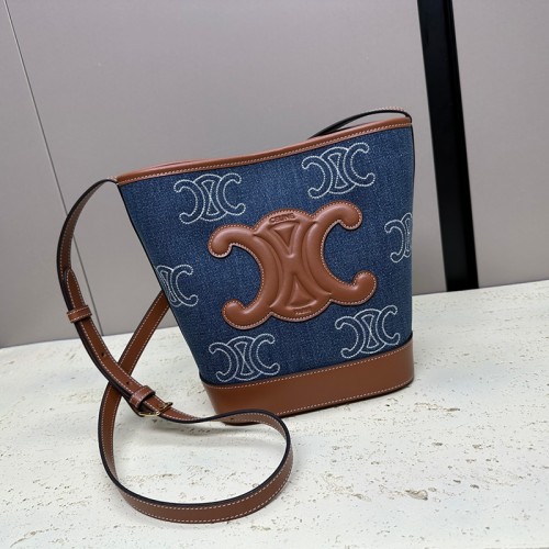 셀린느 퀴르 트리오페 미니 버킷 데님 카프스킨 네이비 탠 10L432FDX.07AT
