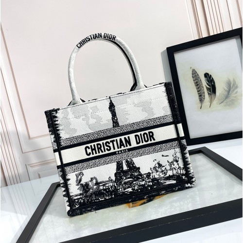 디올 북 토트 백 스몰 파리 화이트 블랙 M1296ZEGG_M933