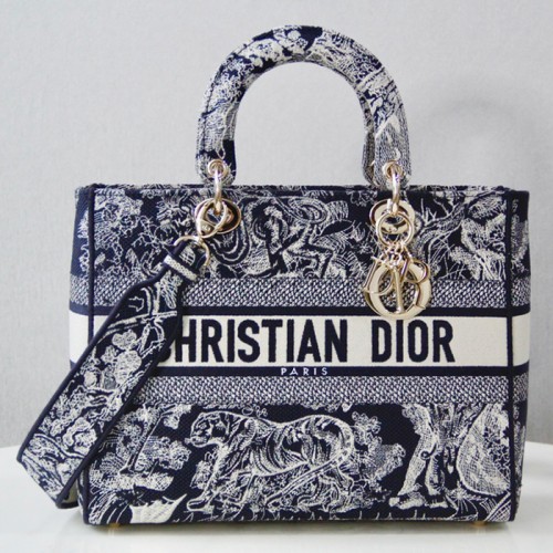 디올 Lady D-Lite 라지 백 BLUE M0566ORGO M932