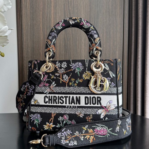 디올 미듐 레이디 디라이트 백 쟈뎅 보타닉 자수 블랙 M0565ORZB M911