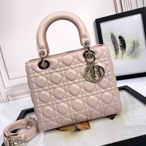 디올 레이디백 호라이즌블루 까나쥬 미디엄 토트백 연핑크 M0565ONGE