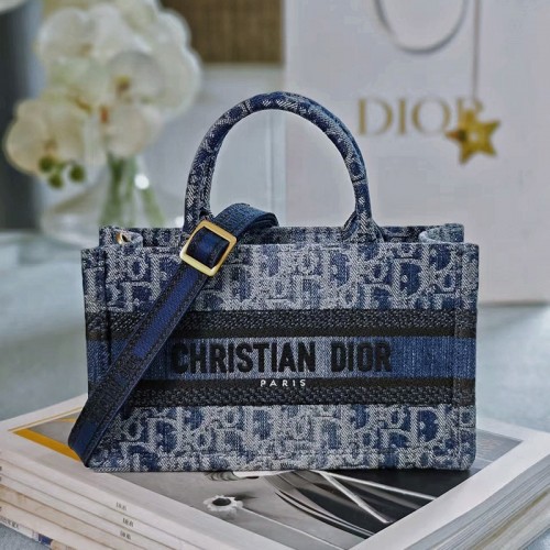 오블리크 북 토트 백 미니 블루 데님 S5573CEGC_M49E