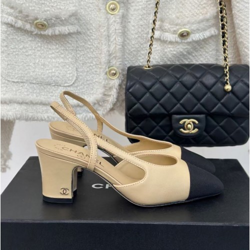 샤넬 여성 투톤 고트스킨 슬링백 미들힐 베이지 블랙 G31318