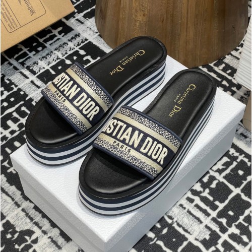 디올 디웨이 플랫폼 여성 뮬 샌들 딥블루 KCO258ERC