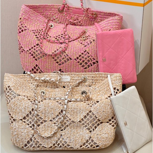 샤넬 24 코코비치 라피아 백 라탄 체인 쇼핑백 라지 맥시 2컬러 AS4576