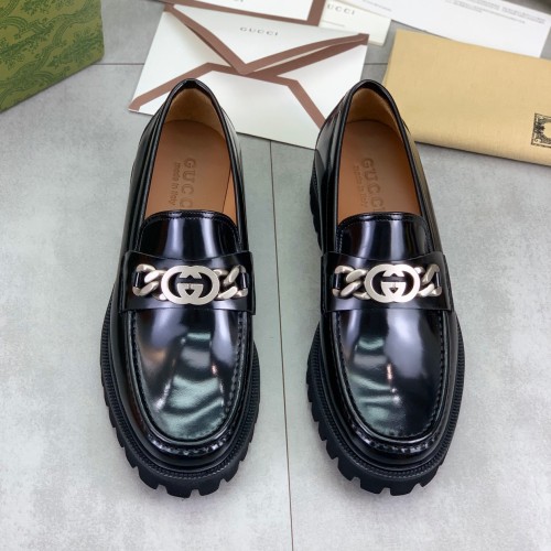 구찌 인터로킹 G 체인 가죽 로퍼 블랙 752093