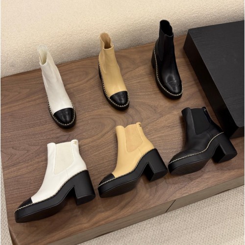 샤넬 25B 송아지 가죽 라운드 앵클 첼시부츠 8CM 블랙 G46706