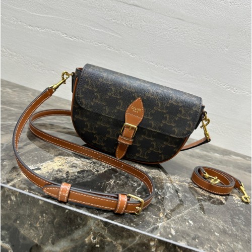 셀린느 트리옹프 캔버스 카프스킨 폴코 숄더백 탄 122652GTL 04LU