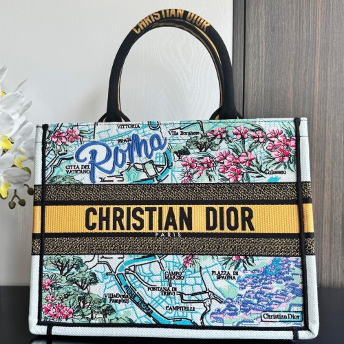 디올 로마 로고 코튼 토트백 미듐 남녀공용 M1296ZEJL