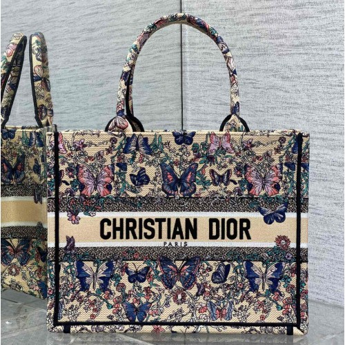 디올 미디움 북 토트 투왈 드 주이 빠삐용 자수 화이트 블루 M1296ZEEV-M933