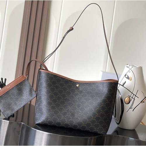 셀린느 소프트 쇼퍼 백 트리옹프 캔버스 카프스킨 탠 숄더백 123912GXC