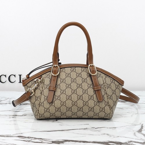 구찌 GG 엠블럼 스몰 탑 핸들 핸드백 베이지 브라운 패브릭 839005 > 가방
