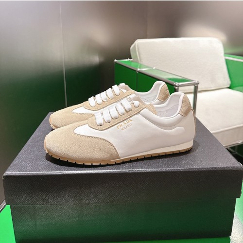 프라다 나파 가죽 스웨이드 스니커즈 베이지 1E151O