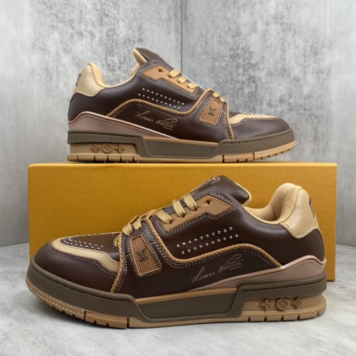 루이비통 트레이너 송아지 가죽 로우탑 브라운 스니커즈 1AD7L6