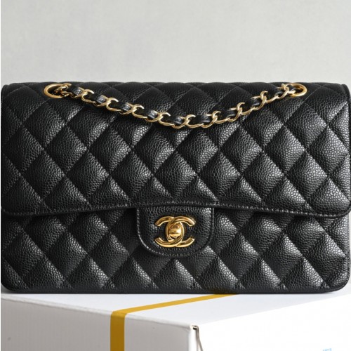 샤넬 클래식 미듐 캐비어 플랩백 금장 A01112