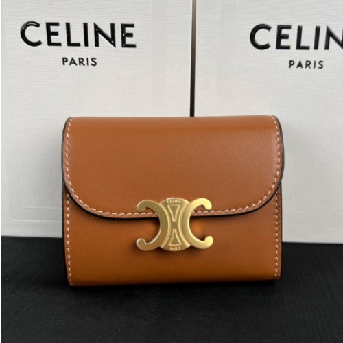 셀린느 샤이니 카프스킨 트리옴페 스몰 플랩 여성 지갑 카멜 10D783DPV > 셀린느