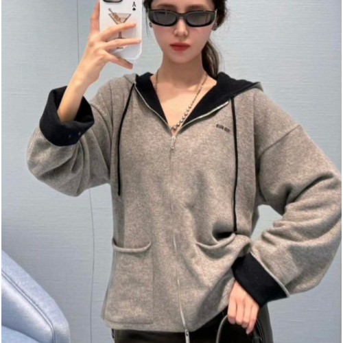 미우미우 SS26 캐시미어 가디건 여성 후드 MMF00T D
