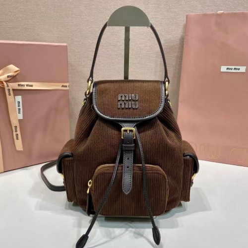 미우미우 골덴 원단 백팩 커피 5BZ043