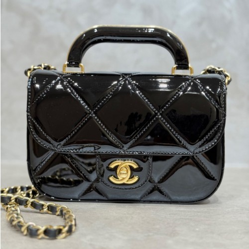 샤넬 스몰 체인 클러치 미러 카프스킨, 골드 메탈 블랙 AP4892