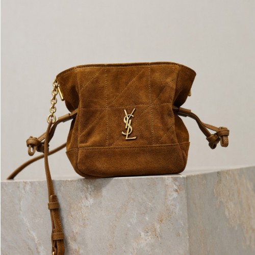 생로랑 제이미 미니 숄더 파우치 스웨이드 브라운 859174
