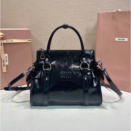 미우미우 빅리본장식 탈부착 조절식 토트백 블랙 5BA327