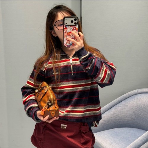 미우미우 체닐 자수 하프 집업 스웨터 MMR465 H