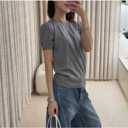 샤넬 26SS 26P 캐시미어 니트 반팔 CC로고 쇼트 슬리브 탑 그레이 실크 P81364 H > 니트/스웨터