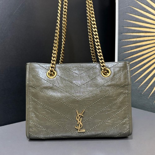 생로랑 니키 골드 로고 레더 스몰 숄더백 872680 > 숄더백