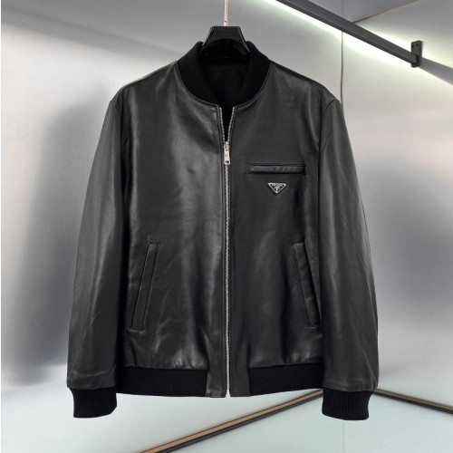 프라다 가죽 자켓 블랙 리버시블 나파 레더 나일론 봄버 UPW280038