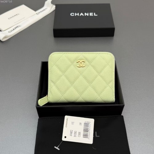 샤넬 캐비어 지퍼 반지갑 녹두색 AP4652
